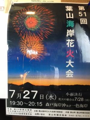 今年の葉山の花火大会は7月27日水曜日19時半〜20時15分までです。