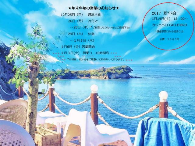 新年会は1月14日(土)18時から恒例の鎌倉(カジェヘロ)にて、美味しいお食事と飲み物をご用意!!